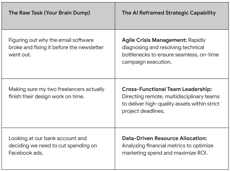When you use a prompt like this, the transformation is immediate and powerful. Consider the difference in how your skills are perceived: